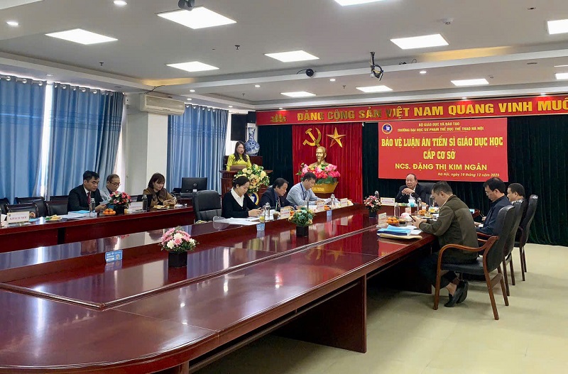 Ngày 19/12, Trường Đại học Sư phạm TDTT Hà Nội đã tổ chức bảo vệ luận án tiến sĩ Giáo dục học cấp cơ sở cho nghiên cứu sinh Đặng Thị Kim Ngân với đề tài: “Nghiên cứu một số giải pháp phát triển thể chất cho trẻ mẫu giáo 5–6 tuổi trên địa bàn thành phố Hà Nội” được thực hiện dưới sự hướng dẫn khoa học của PGS.TS Nguyễn Quang Vinh và PGS.TS Phùng Xuân Dũng.