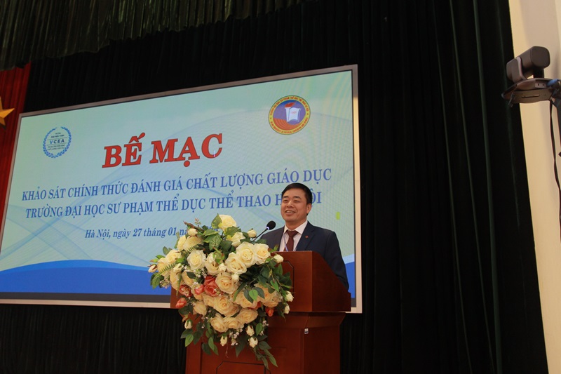 Phát biểu tại buổi lễ, PGS.TS. Nguyễn Duy Quyết – Phó Bí thư Đảng ủy, Hiệu trưởng Nhà trường trân trọng cảm ơn Đoàn chuyên gia đánh giá ngoài và Trung tâm Kiểm định chất lượng giáo dục – Trường Đại học Vinh đã làm việc nghiêm túc, khách quan, trách nhiệm. Hiệu trưởng Nhà trường khẳng định, Trường Đại học Sư phạm Thể dục Thể thao Hà Nội sẽ nghiêm túc tiếp thu các ý kiến, khuyến nghị của Đoàn chuyên gia, coi đây là cơ sở quan trọng để tiếp tục hoàn thiện và nâng cao chất lượng đào tạo trong thời gian tới.