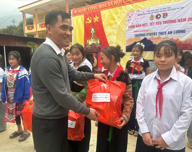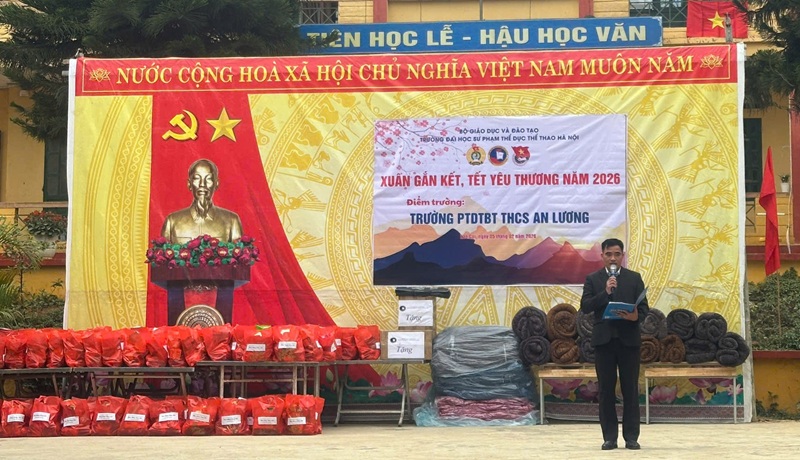 Chương trình thiện nguyện “Xuân gắn kết – Tết yêu thương 2026” đã diễn ra trong không khí trang trọng, ấm áp và giàu tính nhân văn, để lại nhiều ấn tượng tốt đẹp trong lòng cán bộ, giáo viên và học sinh Trường PTDTBT THCS An Lương, qua đó tiếp tục lan tỏa hình ảnh đẹp và trách nhiệm xã hội của Trường Đại học Sư phạm TDTT Hà Nội đối với cộng đồng.