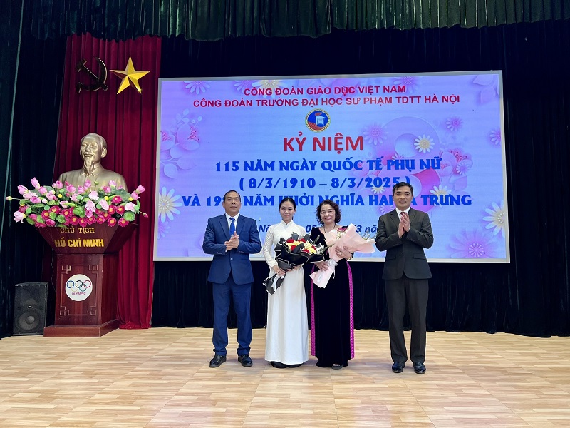 Trong dịp kỷ niệm Ngày Quốc tế Phụ nữ (8/3), Ban Nữ công đã đồng loạt tổ chức nhiều hoạt động thiết thực: mít-tinh kỷ niệm, tọa đàm với chủ đề “Vai trò của phụ nữ trong thời đại 4.0”, và phát động hưởng ứng “Tuần lễ Áo dài”. Những chương trình này nhằm tôn vinh, khẳng định vai trò, tiếng nói của phụ nữ — nữ cán bộ, giảng viên, nhân viên — đóng góp vào sự phát triển của Nhà trường, đồng thời bảo tồn, lan tỏa giá trị văn hoá truyền thống. Đại học Sư phạm TDTT Hà Nội(1).jpg)