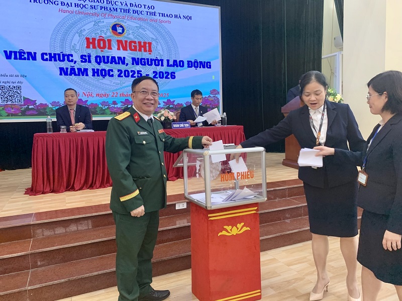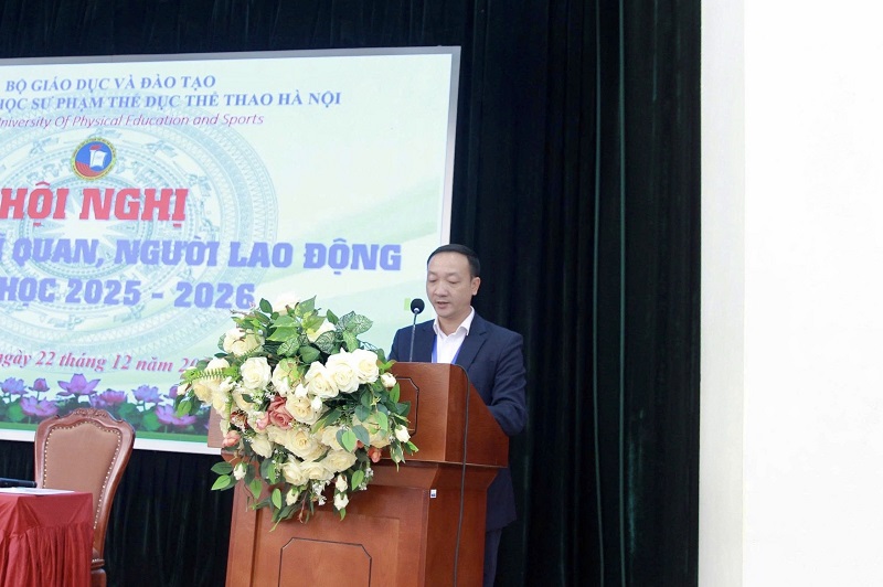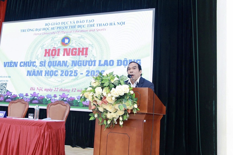 Ngày 22/12, Trường Đại học Sư phạm Thể dục Thể thao Hà Nội tổ chức Hội nghị viên chức, sĩ quan, người lao động năm học 2025 – 2026. Hội nghị là diễn đàn dân chủ nhằm đánh giá kết quả thực hiện nhiệm vụ năm học 2024 – 2025, đồng thời xác định phương hướng, mục tiêu và nhiệm vụ trọng tâm trong năm học mới.