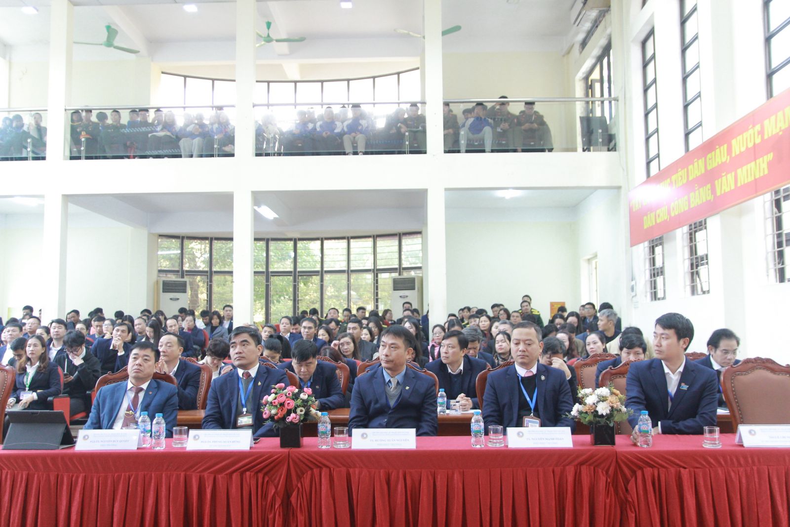 Tham dự buổi lễ, về phía Đoàn chuyên gia đánh giá ngoài có TS. Phạm Lê Cường – Giám đốc Trung tâm Kiểm định chất lượng giáo dục, Trường Đại học Vinh; GS.TS. Phạm Hồng Quang – Trưởng đoàn đánh giá ngoài, cùng các thành viên trong Đoàn chuyên gia.