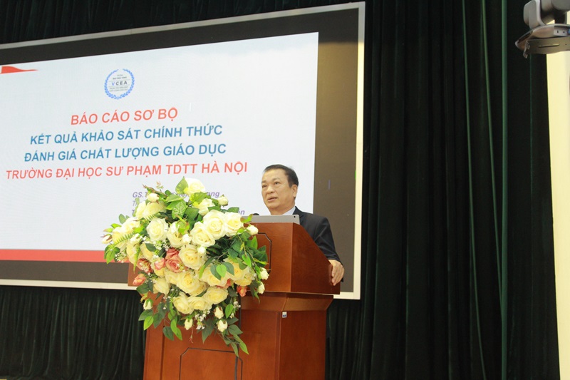 Tại phiên Bế mạc, GS.TS. Phạm Hồng Quang - Trưởng đoàn đánh giá ngoài; TS. Phan Hùng Thư; TS. Hoàng Vĩnh Phú thành viên đoàn đánh giá đã báo cáo sơ bộ kết quả khảo sát chính thức đánh giá chất lượng giáo dục Trường Đại học sư phạm TDTT Hà Nội. Báo cáo của Đoàn Chuyên gia Đánh giá ngoài đã đưa ra nhận định về các vấn đề cốt lõi, điểm mạnh và khuyến nghị cải tiến chất lượng đối với cơ sơ giáo dục theo tiêu chuẩn đánh giá chất lượng được Bộ Giáo dục và Đào tạo ban hành và các khuyến nghị cho đổi mới các hoạt động của Nhà trường nói chung.