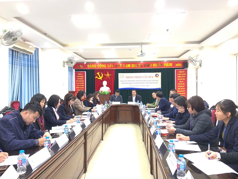 Về phía Trường Đại học Sư phạm Thể dục Thể thao Hà Nội có PGS.TS. Phùng Xuân Dũng – Bí thư Đảng ủy; PGS.TS. Nguyễn Duy Quyết – Phó Bí thư Đảng ủy, Hiệu trưởng Nhà trường; TS. Hướng Xuân Nguyên – Ủy viên Thường vụ Đảng ủy, Phó Hiệu trưởng, Chủ tịch Công đoàn Trường; TS. Nguyễn Mạnh Toàn – Đảng ủy viên, Phó Hiệu trưởng, cùng đại diện Hội đồng Tự đánh giá, lãnh đạo các đơn vị trực thuộc và cán bộ, giảng viên tham gia phối hợp, hỗ trợ phục vụ đợt khảo sát.