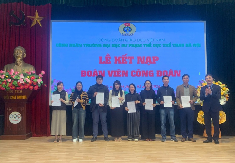 Ngày 04/02/2026, tại Trường Đại học Sư phạm Thể dục Thể thao Hà Nội, Công đoàn Trường đã long trọng tổ chức Lễ kết nạp công đoàn viên cho cán bộ, giảng viên, người lao động đủ điều kiện theo quy định của Điều lệ Công đoàn Việt Nam.