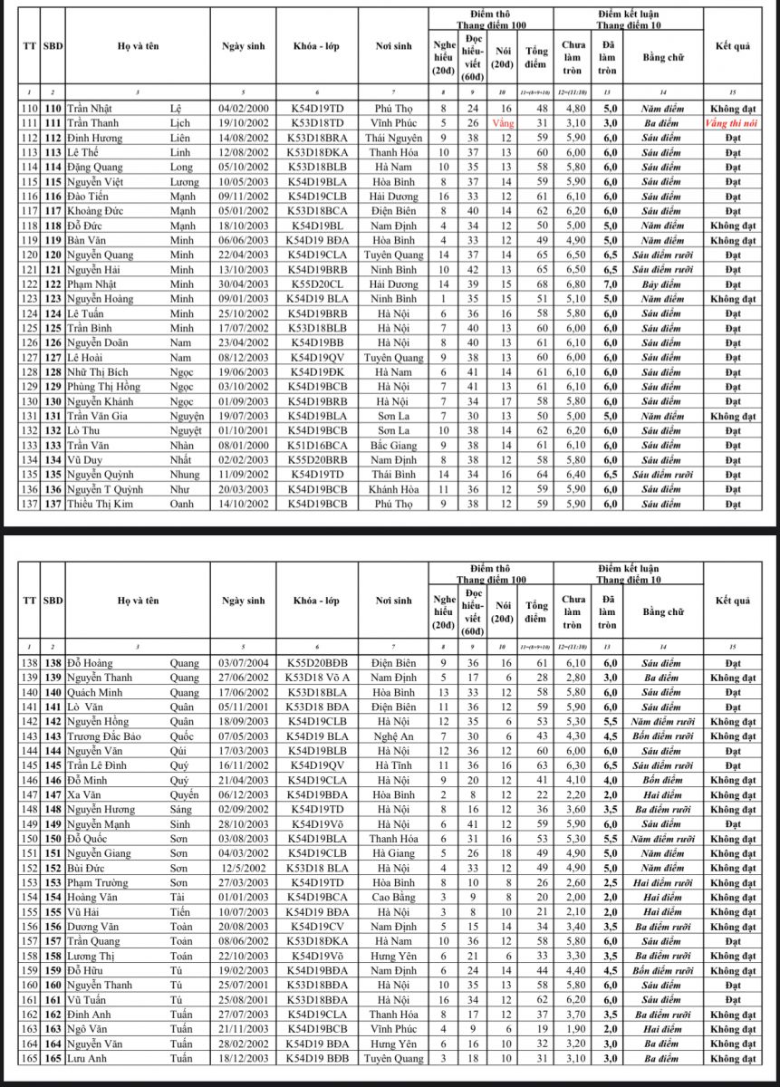 Tổng hợp kết quả thí sinh dự thi CĐR tiếng Anh tương đương cấp độ B1- đợt 3 năm 2024